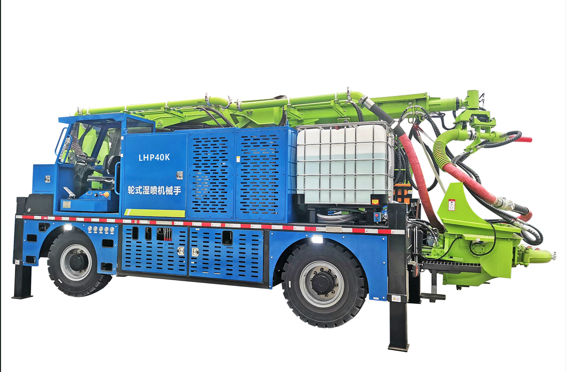 適用于公路鐵路隧道、地下洞庫、水利水電和抽水蓄能電站的隧道錨噴支護作業。LHP40K輪式濕噴機械手是一款綜合國內隧道初支混凝土噴漿工藝及海拔2000米以下地區施工工況研發 升級的一款專用設備,最大噴射方量達到40m³/h,廣泛應用于隧道工程、水利工程、市政工程、道路橋 梁工程等。該設備具有噴射方量大、不易堵管、回彈低、性能穩定可靠等特點,既適用于全斷面,也適用 于半斷面和多階梯開挖。